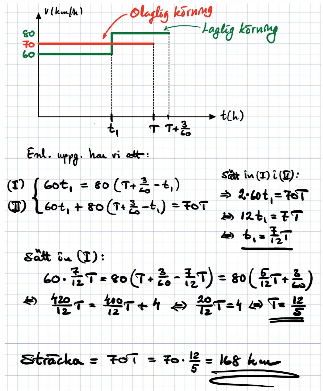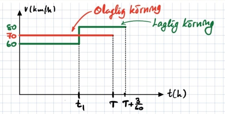 Vi bestämmer också att t1 är tiden för laglig körning, samt att t2 är tid för olaglig.