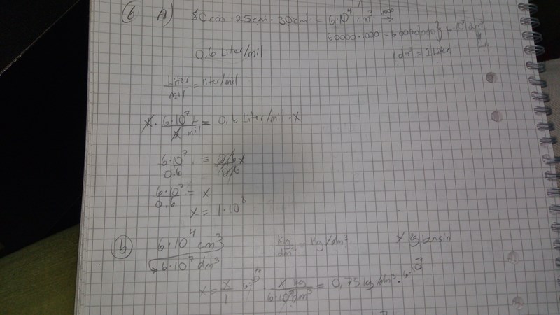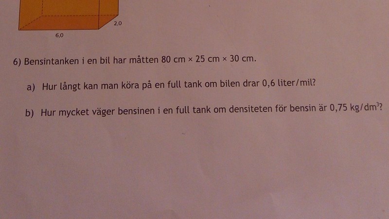 a) Du behöver räkna ut tankens volym och tankens mått är angivna i cm, så svaret borde bli i cm3.