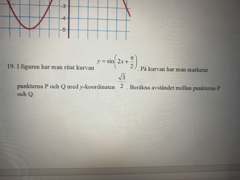 ja, har ju gjort om beräkningarna flera gånger men får negativt ändå. Det behöver ju inte vara just de 2 positiva punkterna P och Q, de hade ju kunnat vara på andra kvadranten- avståndet ska ju fortafrande bli lika stort.