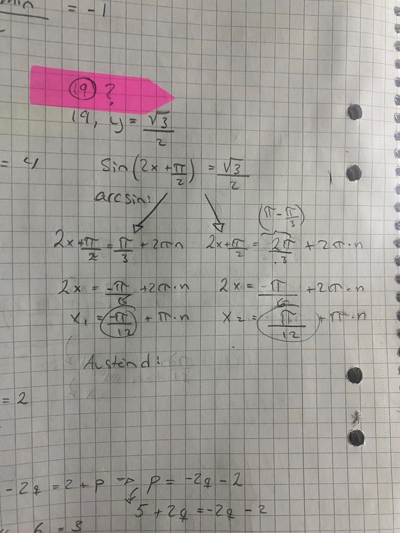om n=1: Är x1= 11pi/12 och x2=13pi/12, det blir ju samma sak- som jag skrev innan
