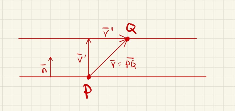Säg att du har två parallella plan och att du vet en punkt P i ena planet och en punkt Q i det andra planet.