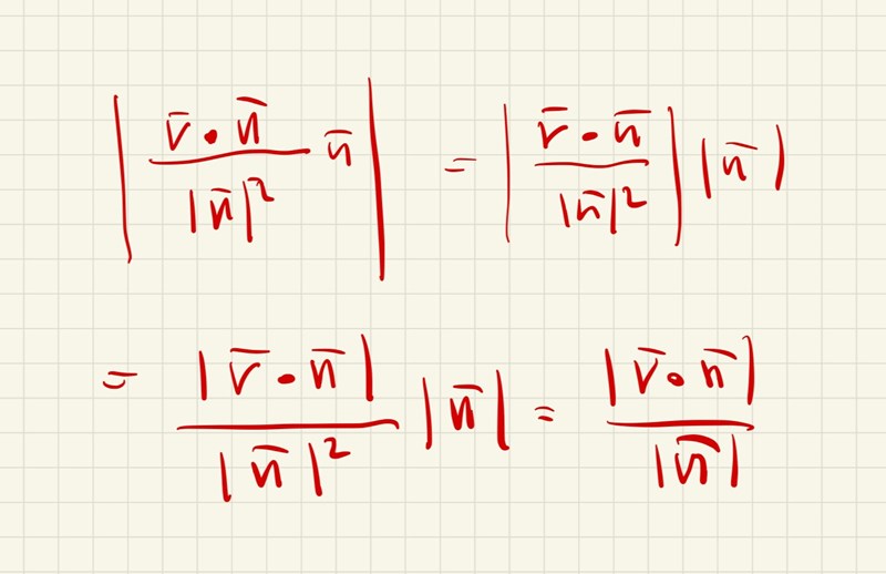 Säg att vi delar upp vektorn i komposanter, där en komponent är vinkelrät mot planen och en komposant är parallell med planen. Se figur.