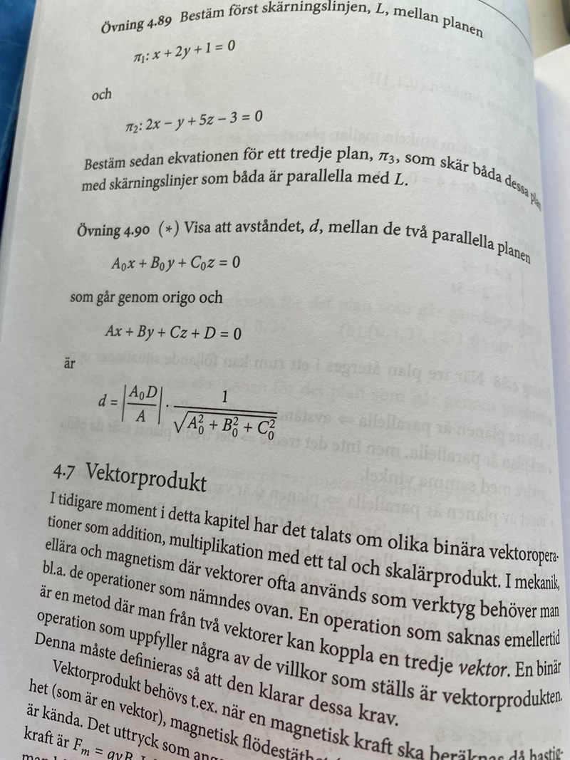Där första planet går igenom den första och andra planet den andra. Jag hittar en normalvektor