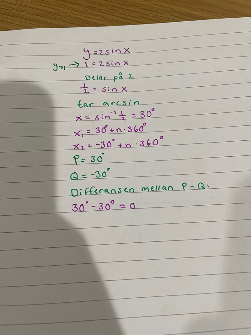 sin. x = sin 30 grader (gradknapp saknas på min mobil)