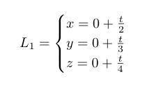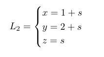 Jag började med att sätta L1=2x=3y=4z=t och L2=x-1=y-2=z=s och har fått fram följande parameterframställning