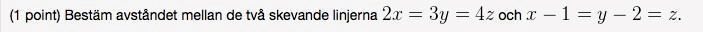 Punkterna och är alltså de punkter du själv tagit fram när du fastställde linjerna på parameterform.