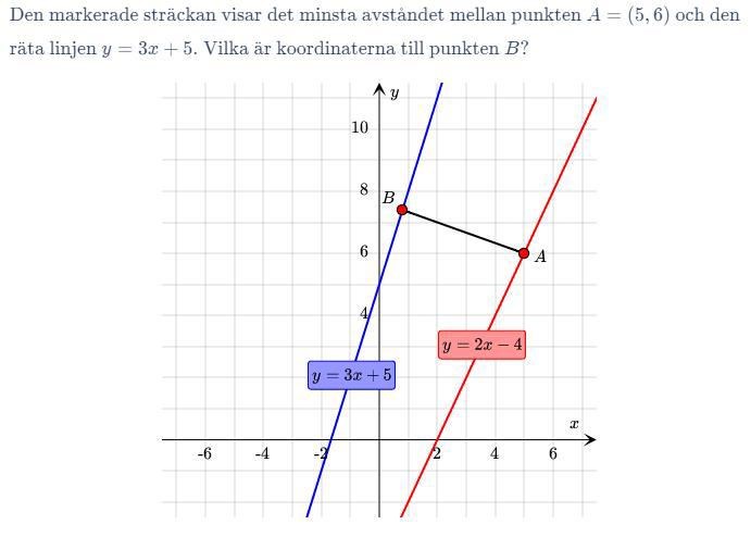 När du har det så får du rätt värde på x, och värdet på y kan du lätt räkna ut, och sedan är du klar. Det faktiska avståndet har de inte frågat efter.