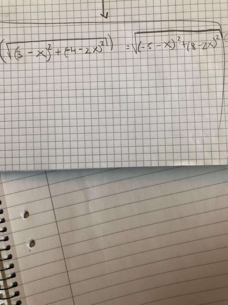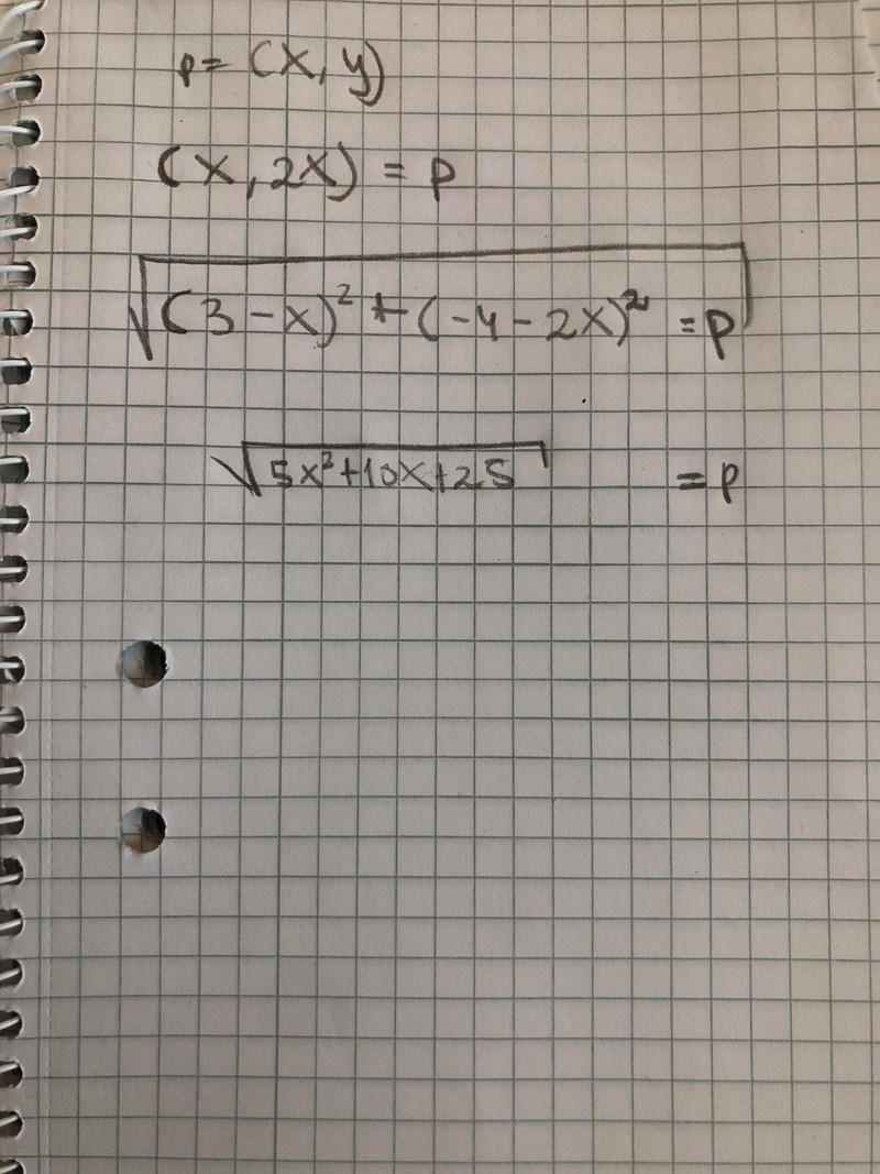 Ovan satte du upp ekvationen för avståndet mellan (3,-4) och (x,2x)
