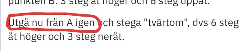 Utgå nu från A igen och stega "tvärtom", dvs 6 steg åt höger och 3 steg neråt.