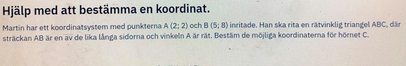 En annan ledtråd är att triangeln är likbent (fast det står inte uttryckligen att den är det).