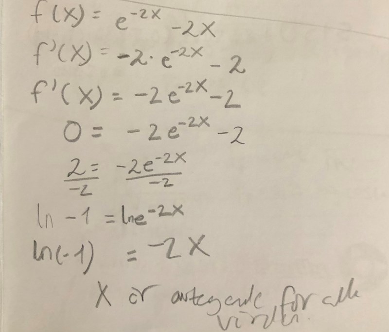 För vilka värden på x är funktionen f(x)=(e^-2x)-2x avtagande?