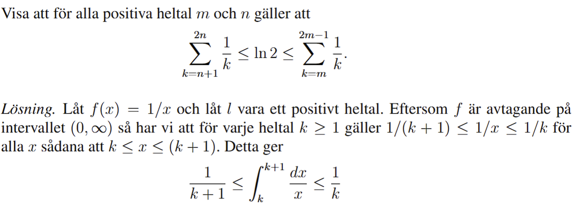 Jag förstår olikheten med 1/(k+1)<= 1/x <= 1/k