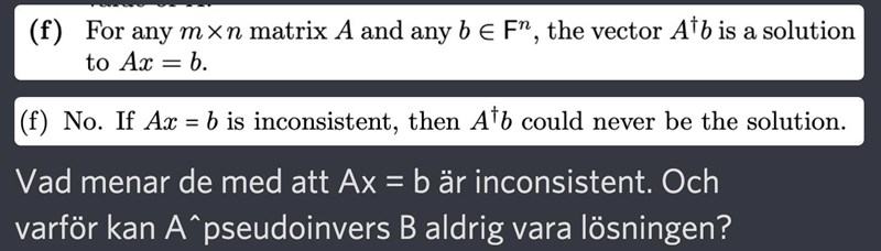 Om ekvationssystemet saknar lösningar är det inconsistent.