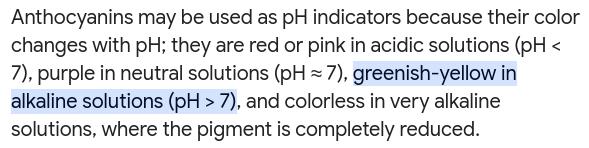 Vakuol och cytosol: innehåller antocyaniner som ger bl.a. gul färg (?) och mörka färger såsom blå, svart, etc. beroende på pH?