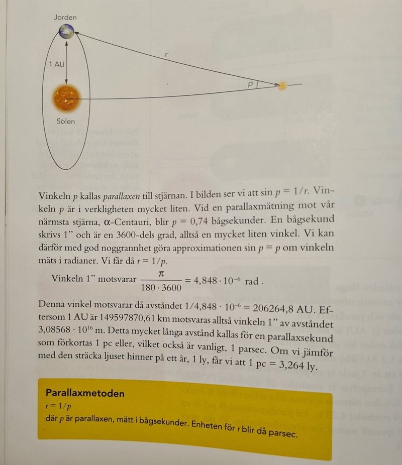 Partykoalan skrev:Kan man utifrån denna text dra slutsats att 1 bågsekund svarar mot 1 parallaxsekund om vinkeln p (parallaxen) mäts i radianer?