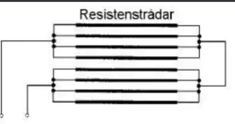 Bakrutan i en bil uppvärms av 8 resistanstrådar, var och en med resistansen 6,0
