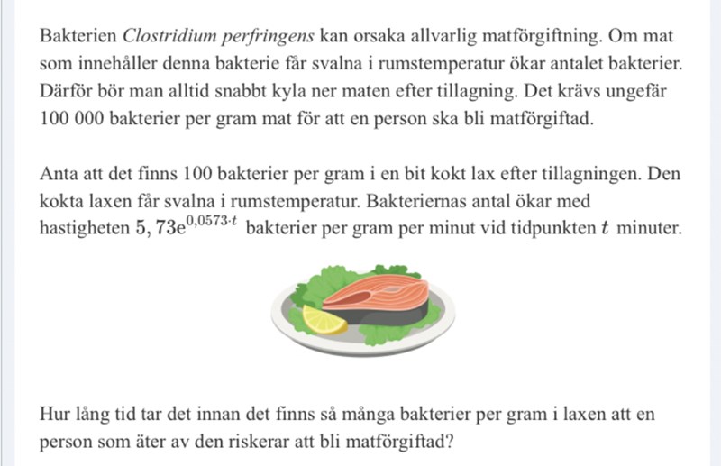 Antag att antalet bakterier vid tidpunkten t minuter anges av funktionen N(t)N(t).
