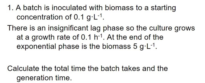tg = ln2/0.1 = 6,93 h. Det verkar inte rimligt för en bakterietillväxt.