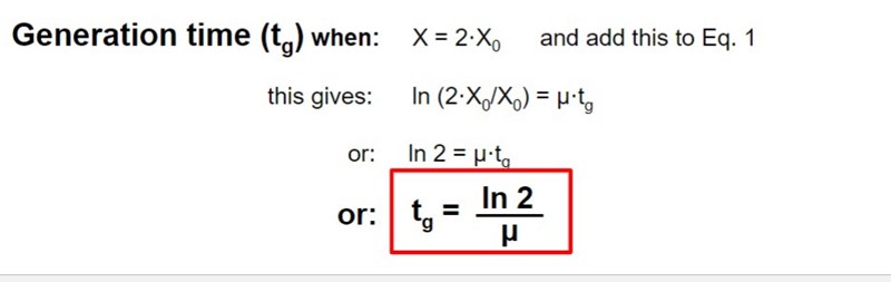 Generationstid borde väl vara den tid det tar för EN celldelning, d v s den tid det tar för antalet bakterier att fördubblas? Om det är en exponentiell tillväxt är denna tid konstant.