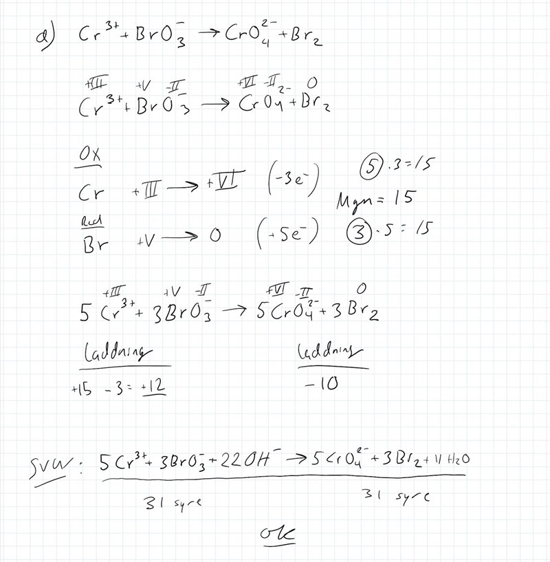 Hej, kan någon se vad jag har gjort fel i min lösning när jag balanserar formeln? Mitt svar skiljer ju sig från facits. (se bilden under)