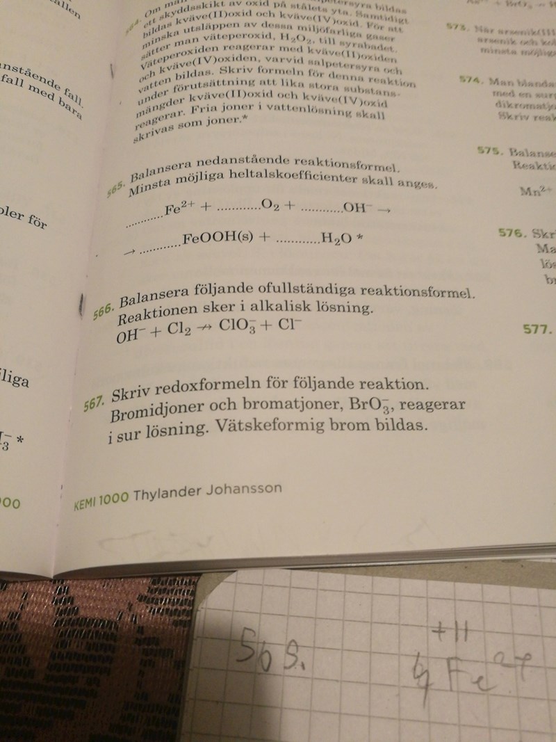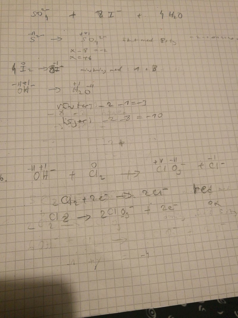 Du hade reaktionsformeln OH^- +5OH^-+3Cl2 - - - - - - > 5Cl^-+ClO^3-