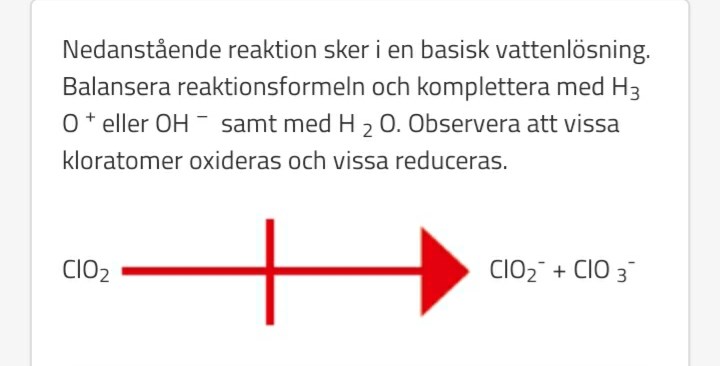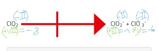 Det där är en typ av reaktion som kallas ”disproportionation” på engelska. I princip är det att ett ämne reagerar med sig självt och bildar två olika produkter där något oxidationstal i den ena produkten blir högre medan det blir lägre i den andra produkten. Kan du sätta ut alla oxidationstal för alla ämnen?
