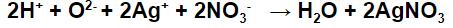 Jag tycker det borde stå Ag2O(s) + 2H+(aq) => 2Ag+(aq) + H2O