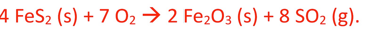 Förbränning av järndisulfid ger produkterna järn(III)oxid och svaveldioxid, skriv en reaktionsformel för denna reaktion och balansera den.