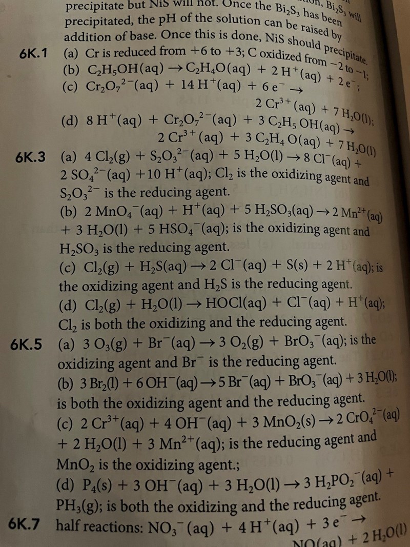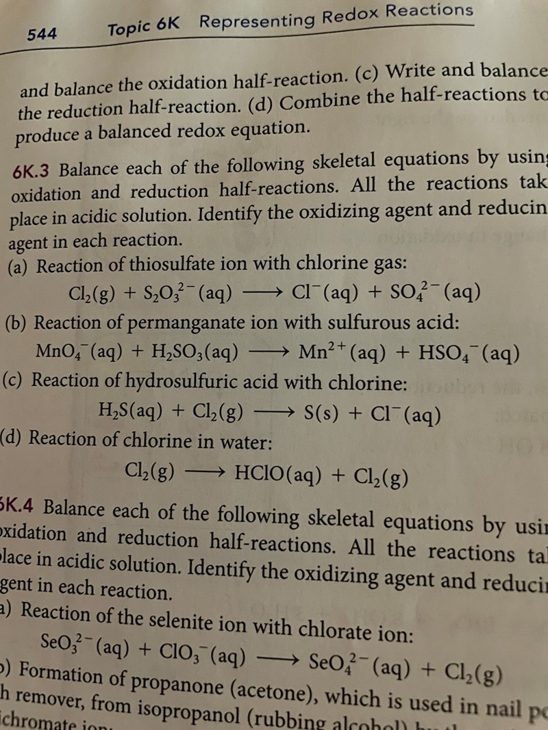 Okej, bilderna kom inte riktigt i ordningen jag hoppats på, men men. På bild 3 uppgift 6K.3 (c-uppgiften) ser ni uppgiften jag har problem med. Facit till uppgiften syns på 1. Om det skulle vara så att det är fel i boken så skulle jag ändå behöva förstå konceptet med hur man balanserar när en atom både oxideras och reduceras.