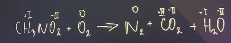Behöver man veta det? Jag skulle börja med att ta 2 nitropentan i VL för att balansera N. Sedan blir det 2 CO2 för att balansera C.