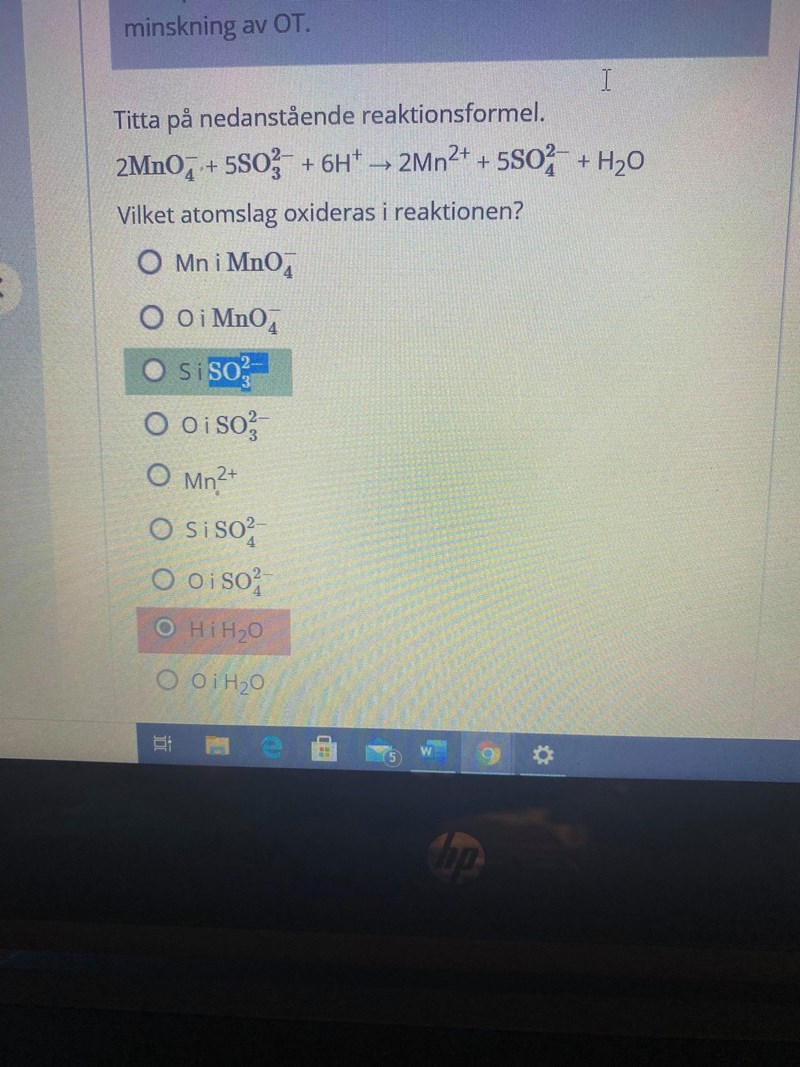 Hej jag har fastnat på ovanstående problem. Förstår inte varför svaret ska vara s och hur man kommer fram till det. Jag har försökt sätta ut oxidationstalen på varje jon ( i och med att det är sammansatta joner i formeln) men kommer ingen ingenstans då båda verkar ha oxiderats , ökat i oxidationstal.