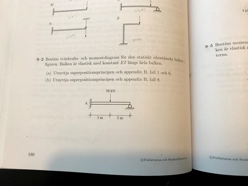 Notis: Den högra lösningen kan du enkelt bestämma själv. Varför de har att du enbart ska använda fall 8 vet jag ej, det ser ut som skrivfel i boken. Du måste nämligen lösa för när kraften på 50 kN är i mitten, det kan du aldrig komma ifrån.