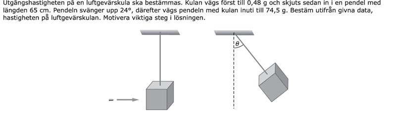 Här nedan använder du fel massa när du räknar ut hastigheten för pendeln inkl kula! Läs uppgiften noga!