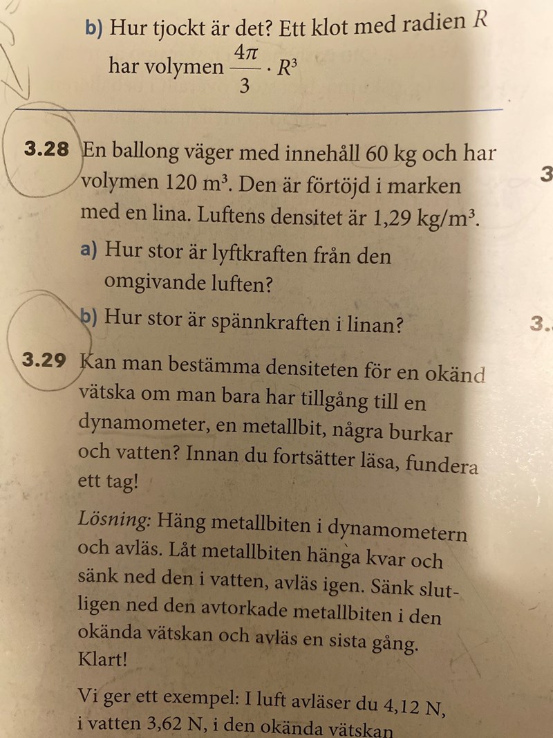 Linan drar ballongen neråt. Det som håller upp ballongen är luftens lyftkraft.