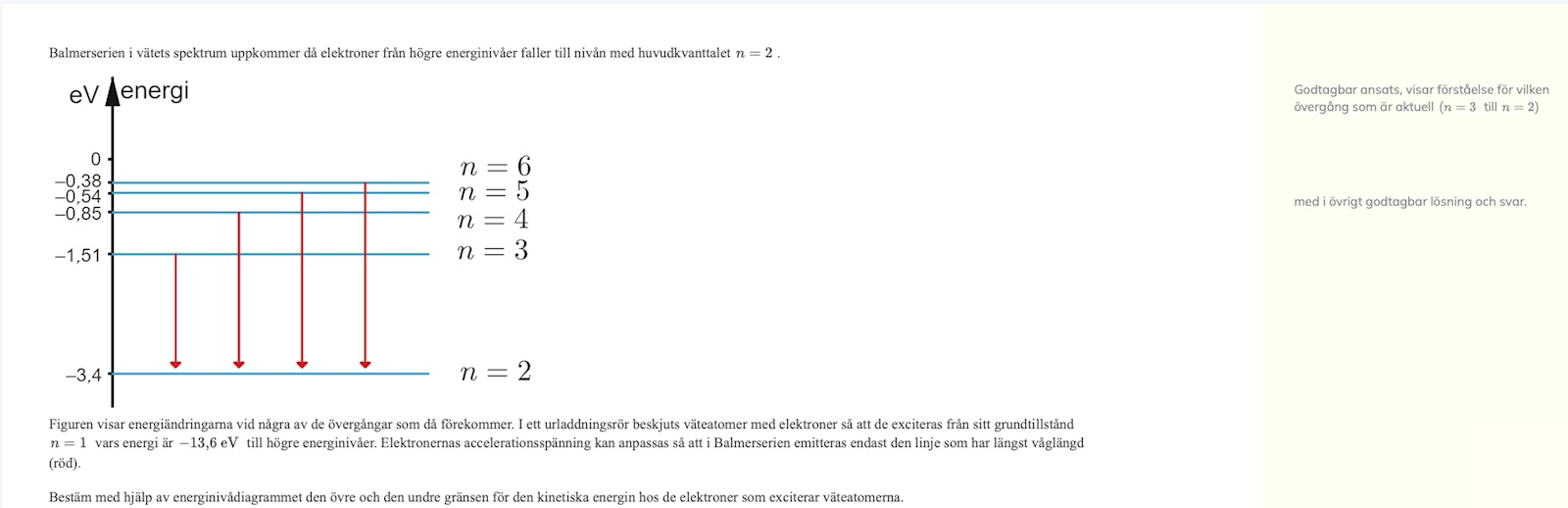 . Själv trodde jag att elektronen skulle "upp" till den tredje nivån (som nedre gräns) och till den sjätte nivån som övre gräns. Detta är nog helt fel.