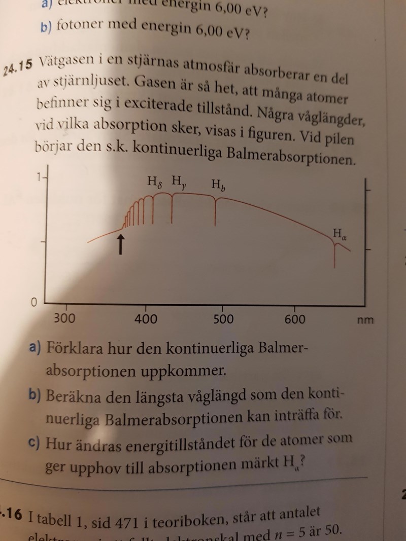 Jag visste inte att det där var en länk (jag är ny), men jag har kollat på den innan jag ställde frågan, Jag förstår vad en balmerserie är för något, det jag inte förstår är fråga 24.15, jag förstår inte grafen överhuvudtaget, vad menar de med ''den kontinuerliga balmerabsorptionen"