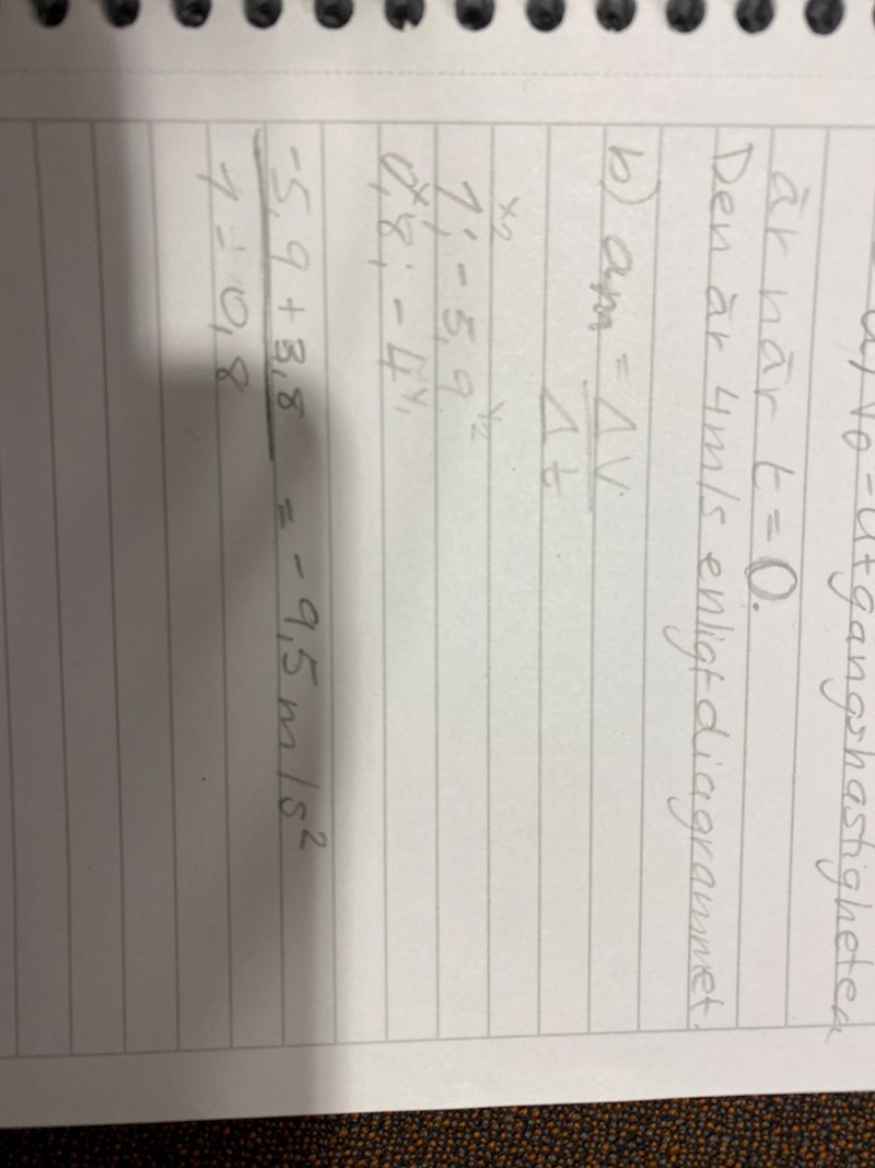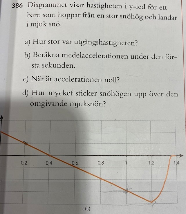 Men på fråga c är väl accelerationen noll då t=1.2 och 1.4? Men svaret säger bara vid 1.2s?