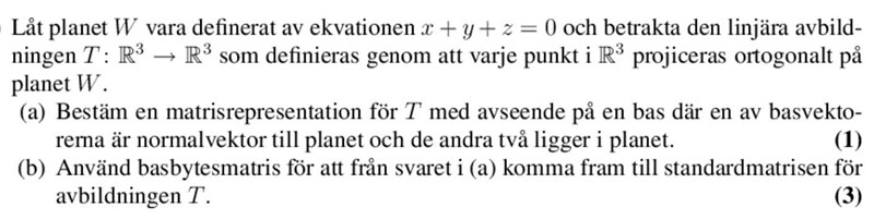 Om vi väljer matrisen ... är den basbytesmatris från standardbas till specialbasen (som tillhör planet) eller tvärtom?