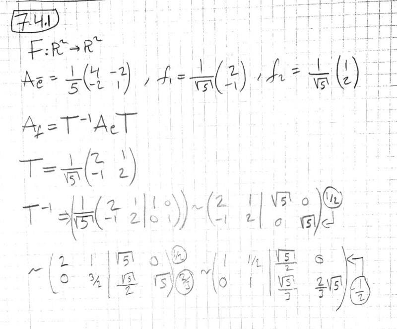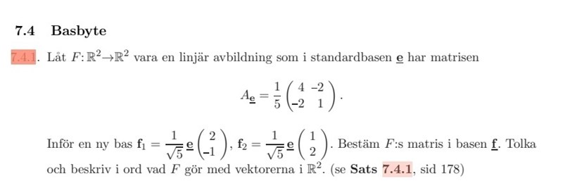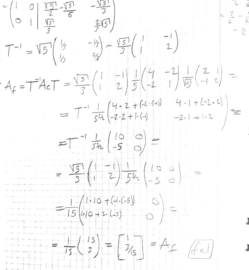 Matrisen T, konverterar den från e till f, eller tvärtom? Vad säger facit? :)