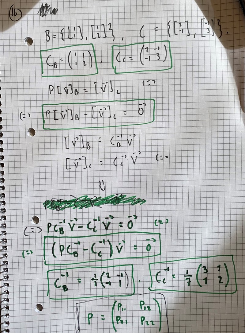 P[v]B - [v]c = <0,0> men det(A) = 0 (A = matrisen med svart tuschpenna) kommer vara svårt att lösa... finns det ett smidigare sätt att lösa uppgiften på? går det att lösa uppgiften på mitt sätt?