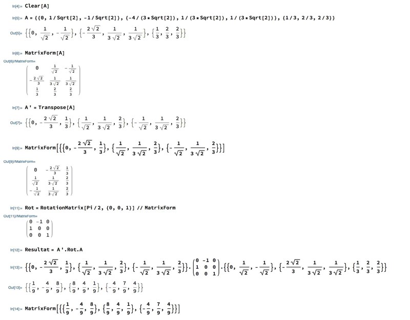 Så operationen är: gå till bas , gör rotation, gå tillbaka till bas , i matrisspråk går vi åt motsatshåll: