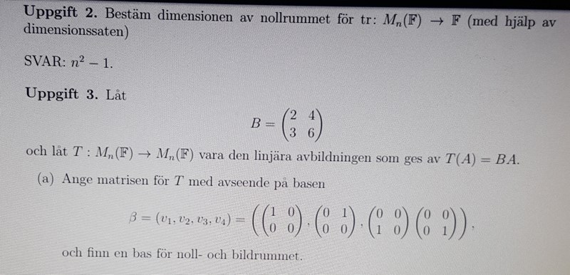 Jag trodde först att matrisen för T skulle bli: Då jag tänkte att man kunde skriva basens matriser som osv.