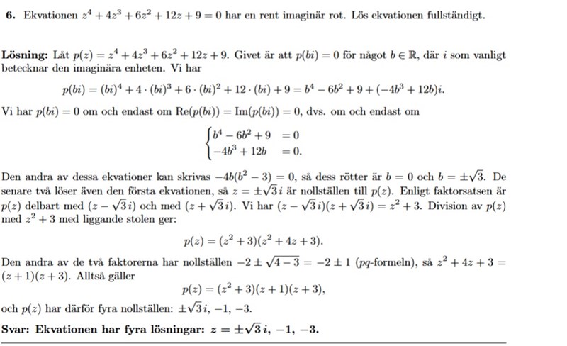 Vi har funnit två rötter till . Vi kan då använda faktorsatsen för att konstatera att delar .