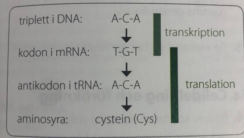 Det står att kodonet i mRNA är T-G-T, vilket är konstigt