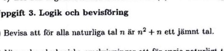 Frågan är att bevisa att för alla naturliga tal (n) är (n^2+n) är ett jämnt tal?