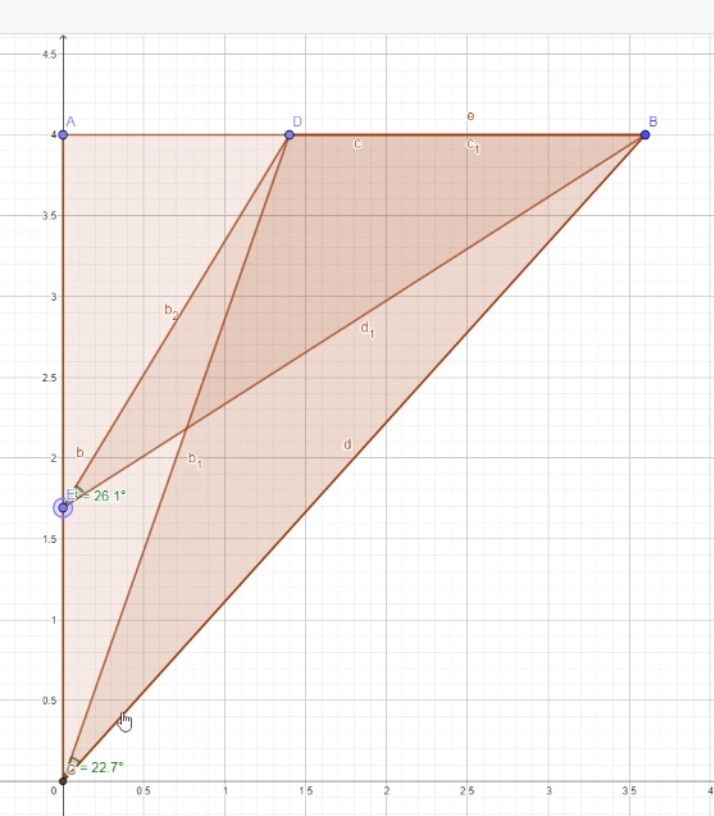 Det jag har provat hittils är att mäta triangeln ur sidan i boken och skriva in dess proportioner i geogebra för att ge mig ett uppskattad svar: