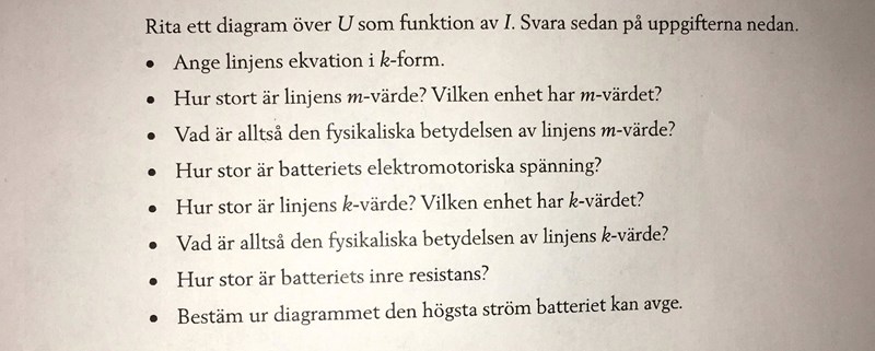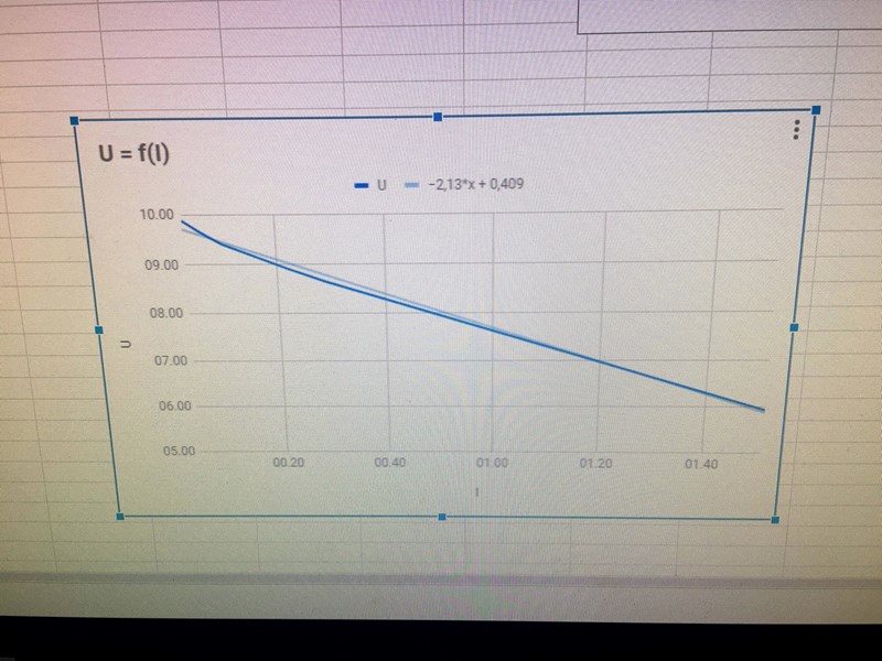 Din formel är felaktig. U=f(I) och f(0)=..?..
