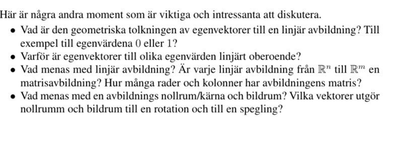 Stötte på olika frågor när jag klickade runt på min kurs i linj algebra. Det är inte någon inlämningsuppgift eller obligatoriskt överhuvudtaget men blev rätt nyfiken på att få svar på frågorna efterom mycket i den här kursen känner jag att jag kan räkna på men får knappt någon intution för det... har försökt kolla lite på youtube för bättre intution inom denna typ av matematik men förstår inte riktigt alla videos. Vill nog ha hjälp med alla frågor men är speciellt nyfiken på den sista frågan och de två första!