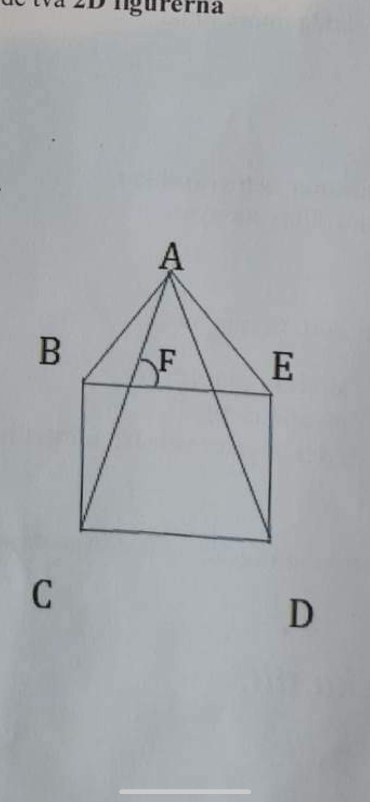 BCDE är en kvadrat och ABE är en liksidig triangel, hur stor är vinkel F?