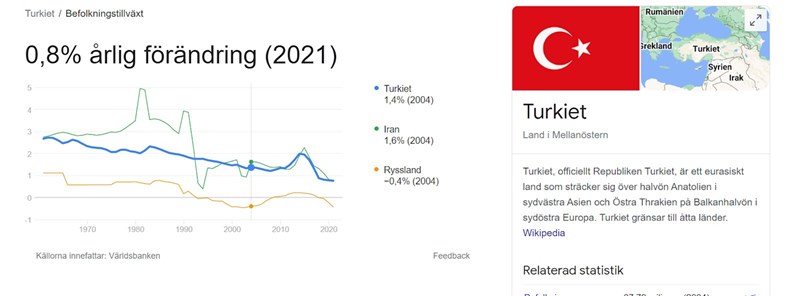 Jag googlade "Turkiet befolkningstillväxt" och "Afgahnistan befolkningstillväxt" för att få fram dessa diagram.